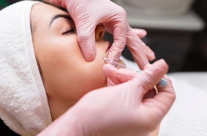 We insert fine, medical-grade threads (made of biocompatible material like PDO) under the skin. These threads: